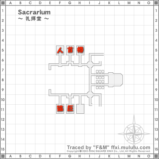 ■礼拝堂⇒入って直ぐの通路に数体いるがスライムなどに注意。ソロも可能だが事故死も多く、フォミュナ水道より強めに設定されている
